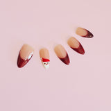 Santa's making a list and these nails are definitely on it. Say hello to Santa Baby, a festive press-on set featuring glimmering wine-red tips and the cutest little Santa you've ever seen. Perfect for when you want to feel festive but still keep it sleek and glam.