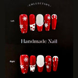 Step into the season with our Santa Chic Press-On Nails, where bold red meets snow-kissed sparkle! This festive set features a winter wonderland of white snowflakes, cute polka dots, pearl accents, and glossy red tips – plus a cheeky nod to Santa’s suit. Whether you're heading to a Christmas dinner, a girls’ night, or just sipping cocktails under the fairy lights, these nails bring instant glam to any holiday outfit.