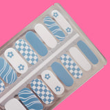 Blue Checkerboard Floral Nail Polish Wraps – Retro Design