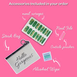 These emerald green nailwraps are rich, bold, and totally mesmerising, finished with delicate gold floral detailing that feels like you’ve struck gold at the end of the rainbow. The deep green base brings that iconic Irish charm, while the fine gold botanical patterns add just the right amount of glam without going over the top.